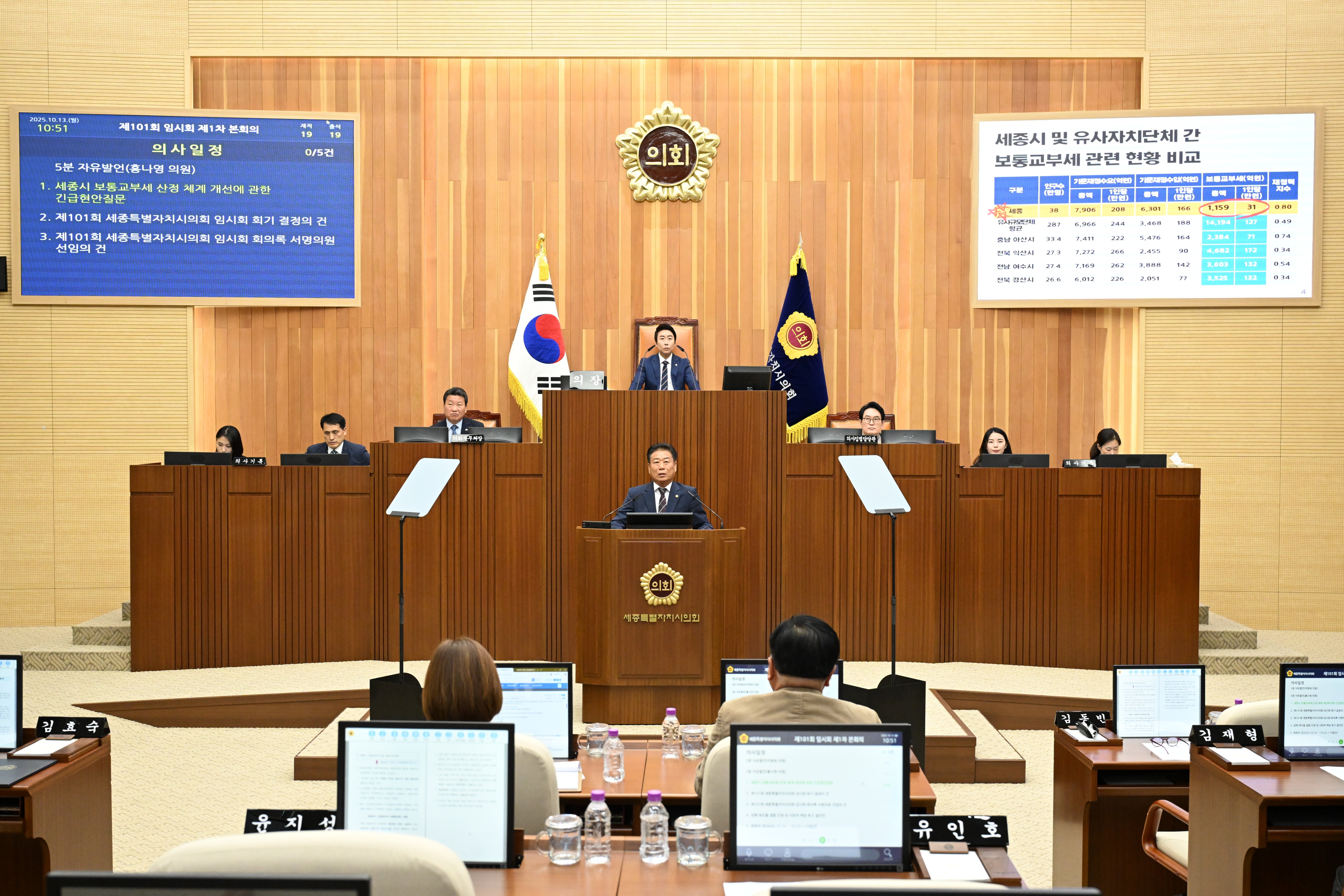 [세종타임즈] 세종시의회 김충식 의원(조치원읍, 국민의힘)은 13일 제101회 임시회 제1차 본회의에서 긴급현안질문을 통해 세종시 보통교부세 산정 체계의 문제점을 강도 높게 지적하고 근본적인 제도 개선을 촉구했다.