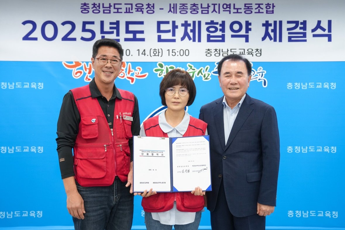 [세종타임즈] 충남교육청(교육감 김지철)은 10월 14일(화) 도교육청 회의실에서 세종충남지역노동조합과 단체협약을 체결했다.