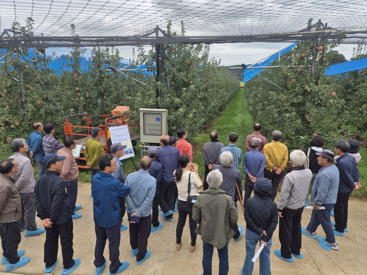 올해 추진된 기후변화 대응 다목적 햇빛차단망 보급 시범 및 미래형 사과단지 조성 시범 등 8개 사업에 대한 자체 사업 평가 및 우수사업장 견학을 함께 진행해 농가들로부터 좋은 반응을 얻었다.