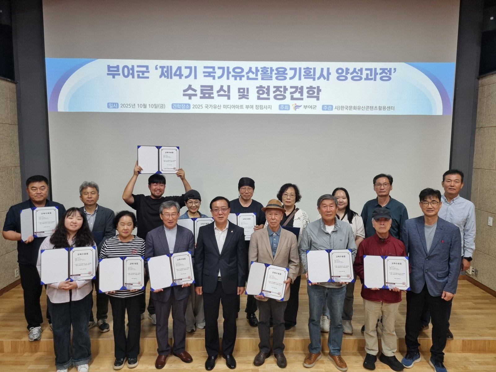 [세종타임즈] 부여군(군수 박정현)은 지난 10일 정림사지박물관에서 ‘제4기 국가유산활용기획사 양성 과정’의 수료식을 개최했다고 밝혔다.