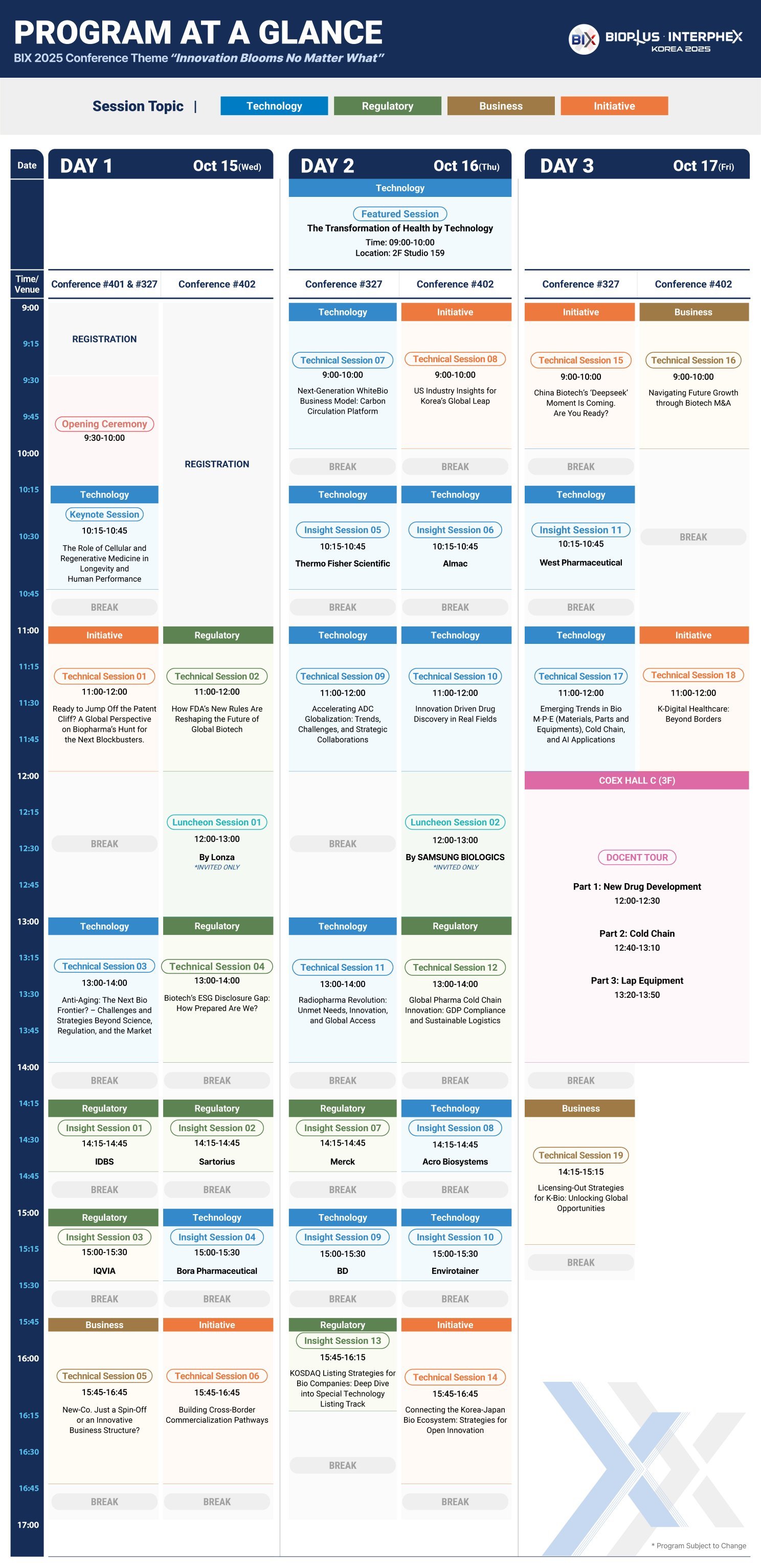 국내 최대 바이오 분야 행사인 BIX는 전시, 컨퍼런스, 비즈니스 파트너링, 등 다양한 프로그램으로 이루어진다.