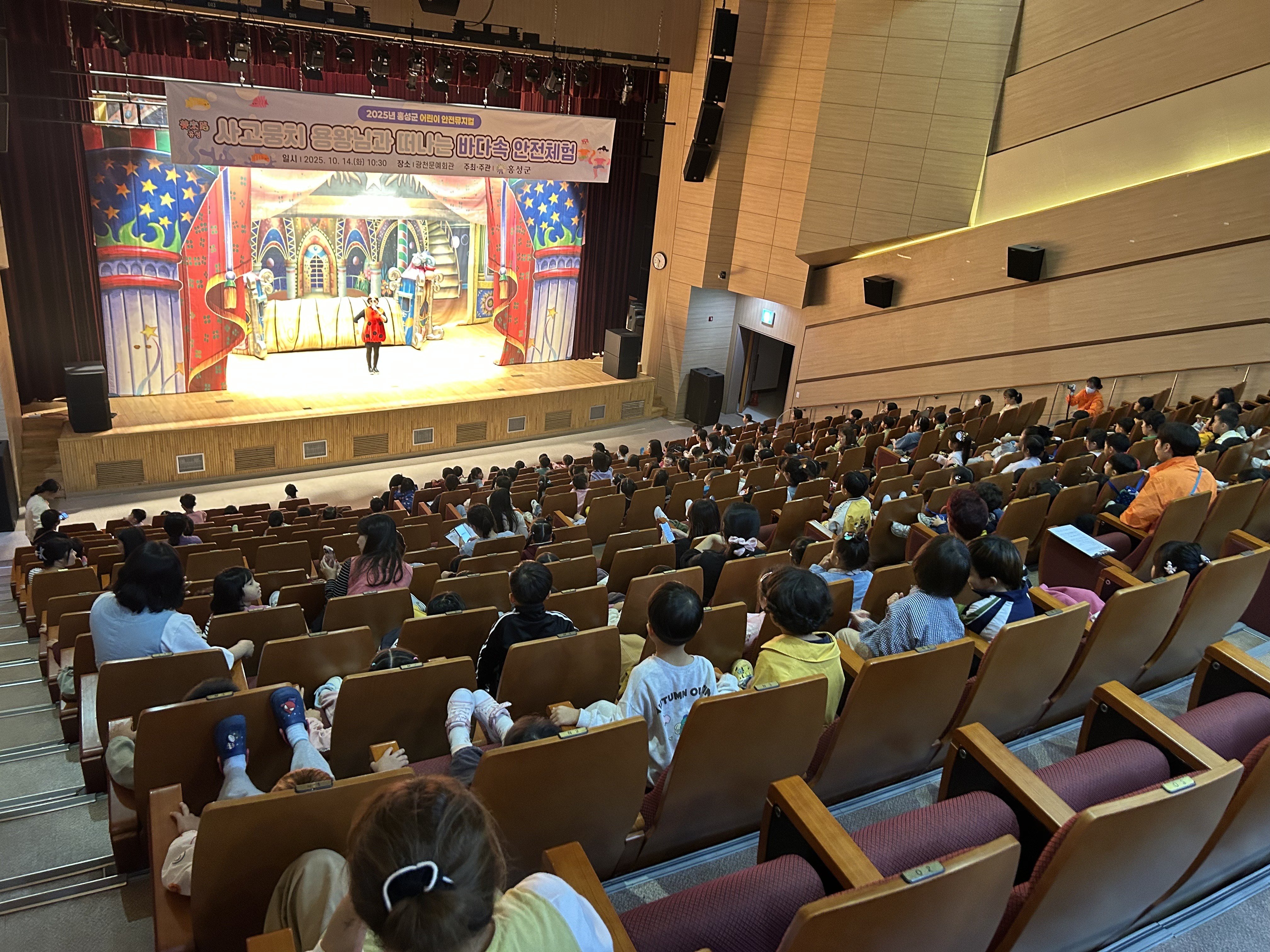 [세종타임즈] 홍성군은 지난 14일 광천문예회관 대공연장에서 미취학 아동(만5세~7세)을 대상으로 ‘사고뭉치 용왕님과 떠나는 바다속 안전체험’ 어린이 안전뮤지컬 공연을 개최했다고 밝혔다.