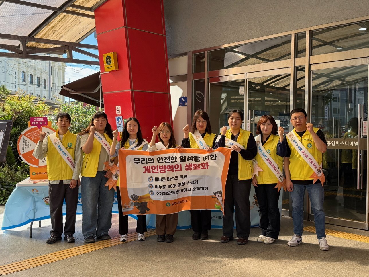 [세종타임즈] 공주시(시장 최원철)는 지난 15일 공주종합버스터미널 일원에서 시민과 이용객을 대상으로 개인위생 수준 향상을 위한 감염병 예방 캠페인을 실시했다고 밝혔다.