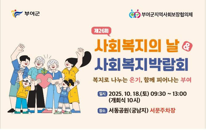 [세종타임즈] 부여군(군수 박정현)은 오는 10월 18일(토) 서동공원 서문주차장에서 ‘제26회 사회복지의 날 및 사회복지박람회’를 개최한다고 밝혔다.