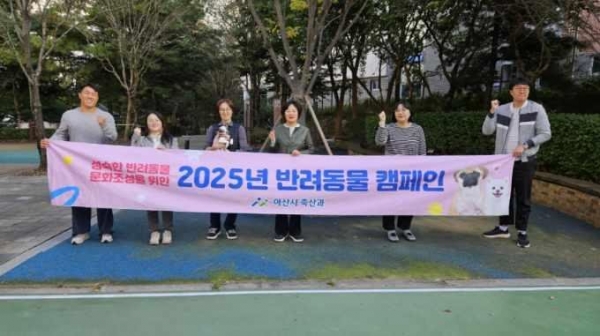 이번 캠페인에는 아산시 축산과 직원 7명이 참여해 환경정화 활동을 펼쳤으며 시민들에게 유기동물 입양, 반려동물 등록제, 반려동물 예절 등 관련 정보를 홍보했다.