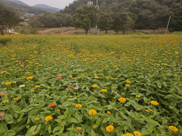 시는 상당구 산성동 107 일원 약 2만7천㎡ 규모 꽃밭의 백일홍 등이 개화했다고 24일 밝혔다.