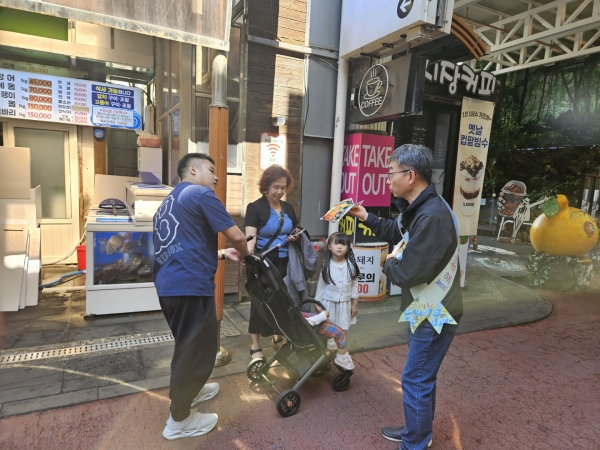 이번 캠페인은 서귀포에서 열린 연찬회에 참석한 농정과 직원 24명이 참여했으며 ‘환영해U’ 어깨띠를 착용하고 전통시장을 찾은 방문객과 상인들을 대상으로 아산의 매력을 적극 홍보했다.