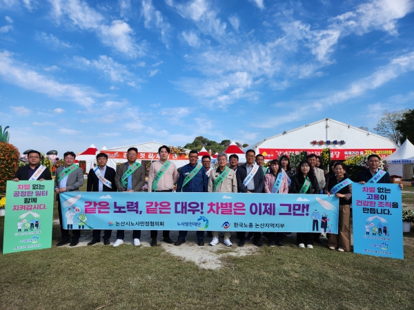 이날 행사에는 충남 노사민정협의회 관계자, 논산시 노사민정협의회 위원, 관계 공무원 등 20여 명이 참여해, 축제장을 찾은 시민들에게 고용차별 예방과 일·생활 균형의 중요성을 알리는 홍보물과 책자, 홍보 물품을 배포했다.