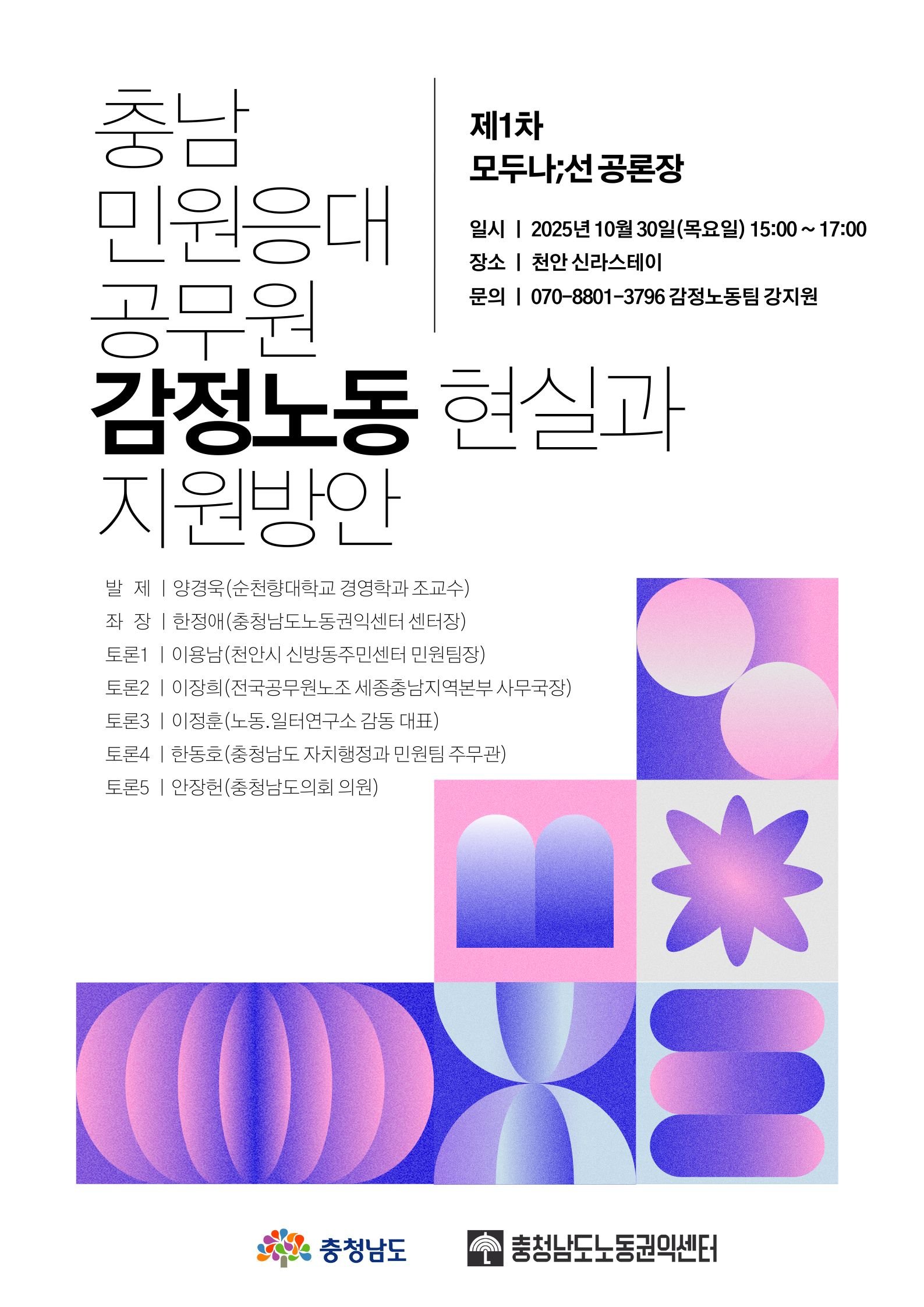 충청남도노동권익센터는 이러한 전국적 위기 상황 속에서 충남 지역 민원응대 공무원의 실태를 진단하고 지역 차원의 선제적 대응책을 마련하기 위해 이번 공론장을 기획했다.