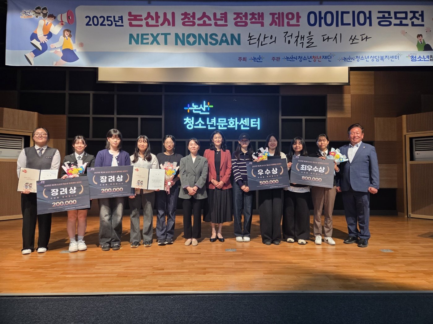 최우수상 수상작 청소년 쉼터(잠시 쉬어가도 좋아)는 청소년을 위한 여가 공간을 제안한 아이디어로 향후 정책 아이디어로 발전시켜 성평등 가족부·충청남도·논산시 등의 청소년 정책 수립 과정에 제안할 예정이다.