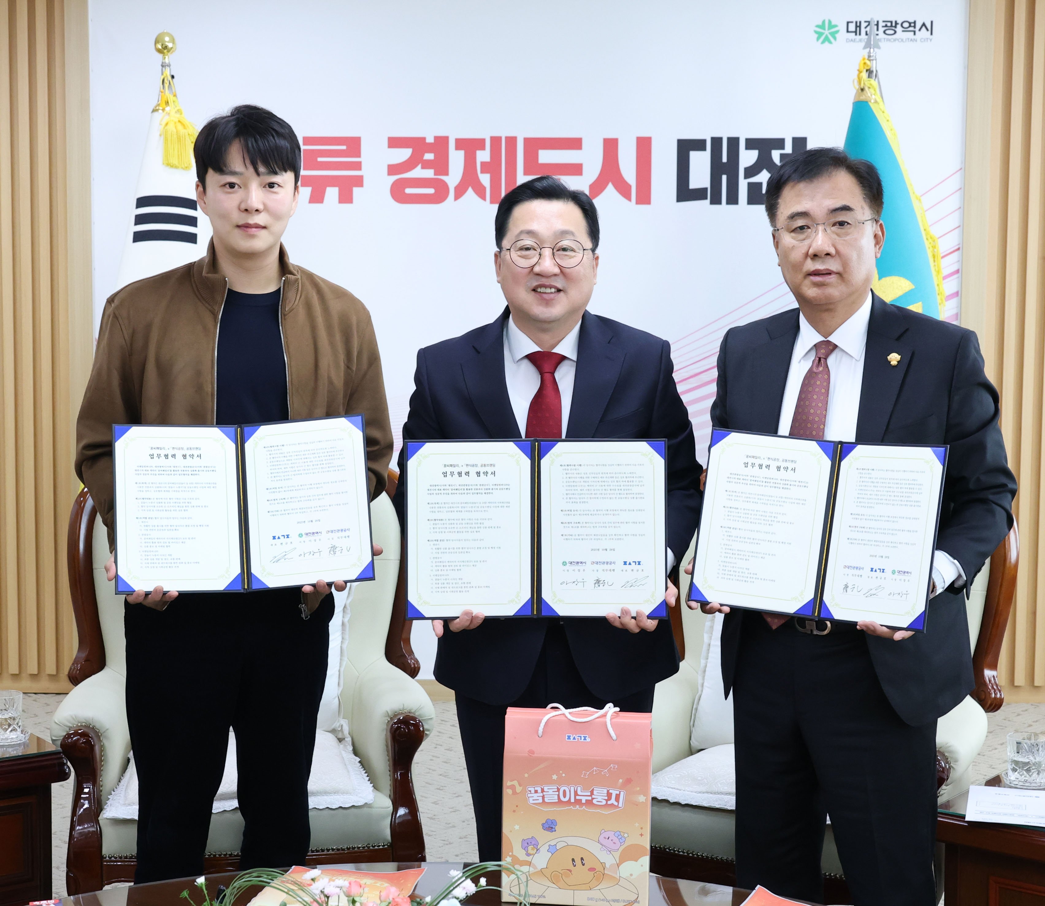 이번 협약은 도시브랜드 IP(꿈씨패밀리)를 일상 식문화와 접목해 기념·선물형 간식을 개발·유통하고 관광 소비 촉진과 지역 상권 활성화, 로컬기업과의 상생 생태계를 조성하기 위한 것이다.