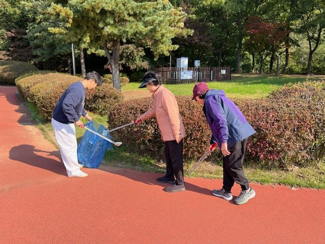 [세종타임즈] 청주시 상당보건소 용암건강생활지원센터는 29일 ‘한걸음 더, 바르게 걷기교실’참여자들과 함께 금천배수지공원 일대에서 ‘우리동네 쓰담’환경정화 활동을 진행했다.
