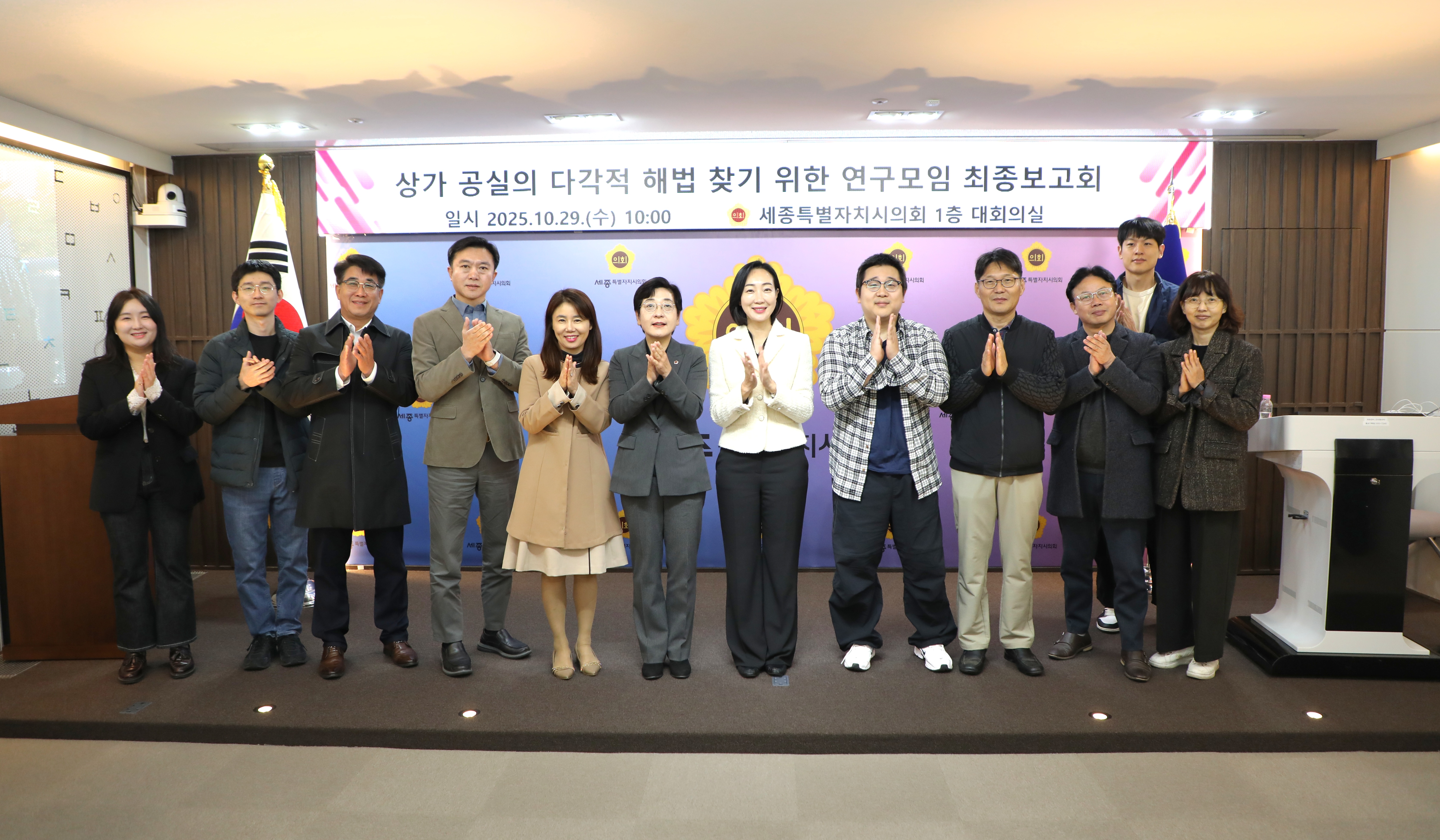 [세종타임즈] 세종특별자치시의회 ‘상가 공실의 다각적 해법 찾기 위한 연구모임’(대표의원 김효숙)은 지난 29일 시의회 대회의실에서 최종보고회를 열고 상가 공실 문제 해소를 위한 다양한 대안을 제시했다.