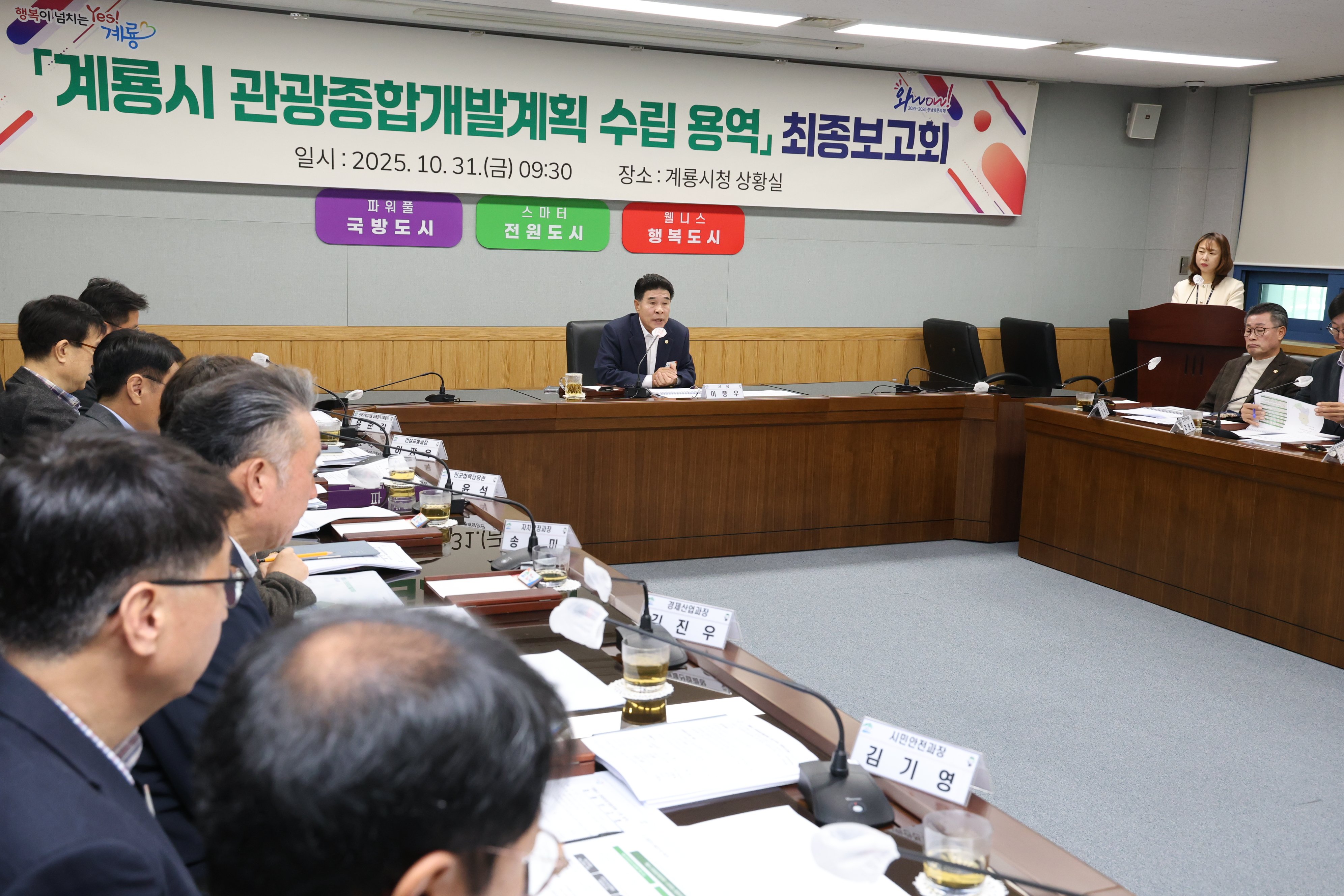[세종타임즈] 계룡시(시장 이응우)는 지난 31일 시청 상황실에서 ‘계룡시 관광종합개발계획 수립 용역’최종보고회를 개최하고 지난 6개월간의 연구 성과와 향후 추진 전략을 공유했다.