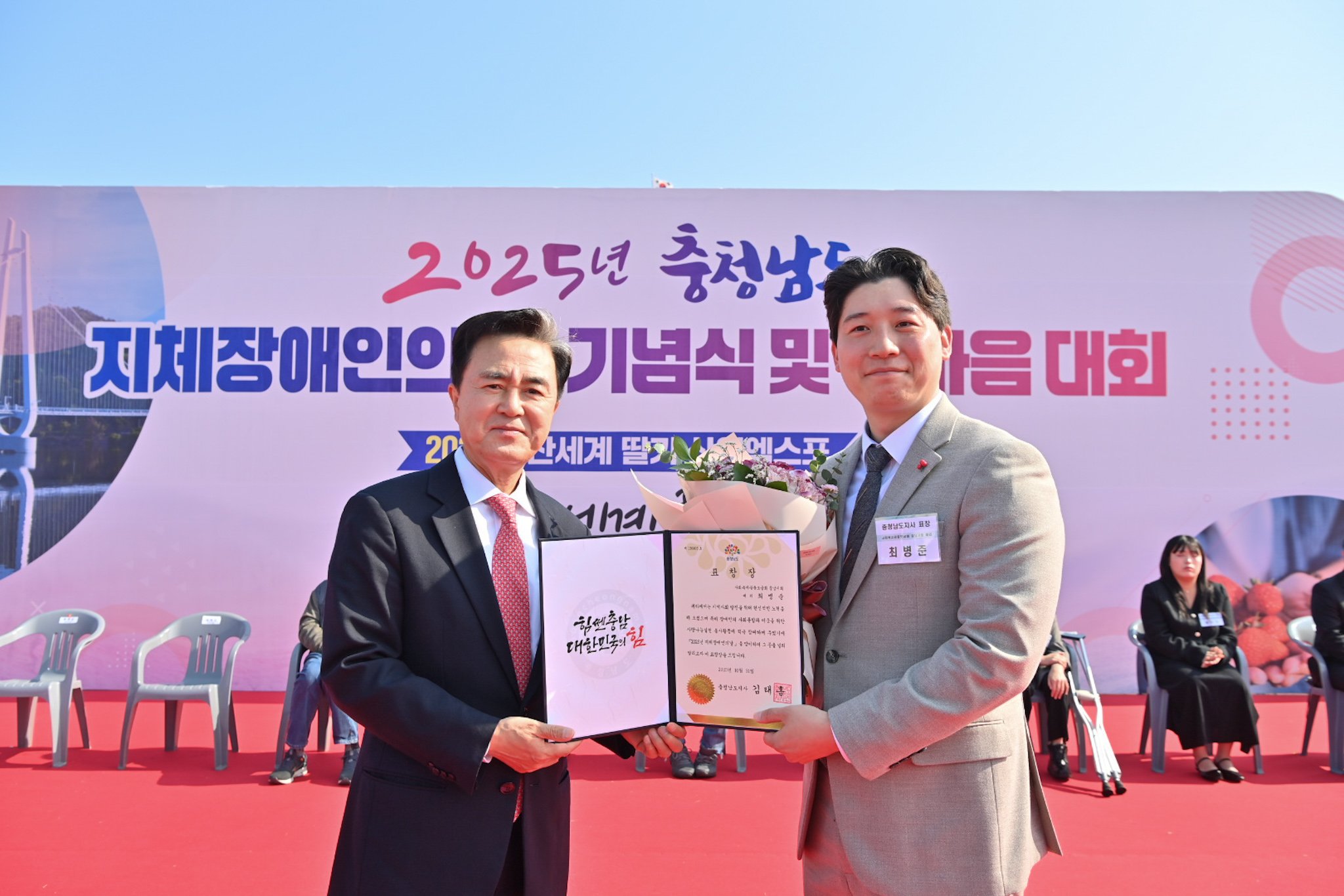 충남지체장애인협회가 주최하고 충남지체장애인협회 논산시지회가 주관한 기념식에는 김태흠 지사를 비롯해 백성현 논산시장, 이건휘 한국지체장애인협회충남협회장, 손병복 충남협회 논산시지회장, 도민 등 2500여명이 참석해 자리를 빛냈다.