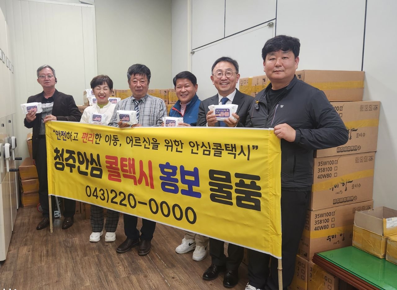청주안심브랜드콜택시는 택시 이용 방법 등이 적힌 홍보 물품을 대한노인회에 전달했으며 홍보 물품은 노인회를 통해 흥덕·청원구 지역 경로당에 전달될 예정이다.