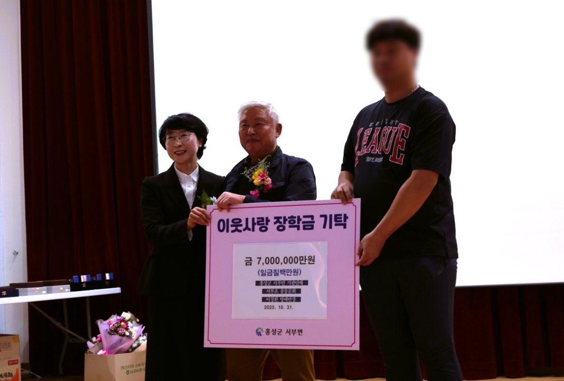 [세종타임즈] 홍성군 서부면행정복지센터는 지난 31일 서부면 주민자치총회에서 가정형편이 어려운 다자녀가정에 대한 장학금 기탁식을 가졌다고 밝혔다.