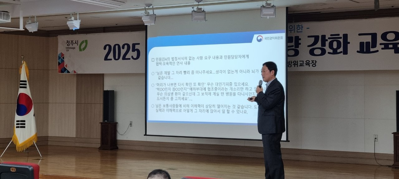 [세종타임즈] 청주시는 4일 청원구청 민방위교육장에서 직원 230여명을 대상으로 ‘악성민원 대응 역량 강화 교육’을 실시했다.