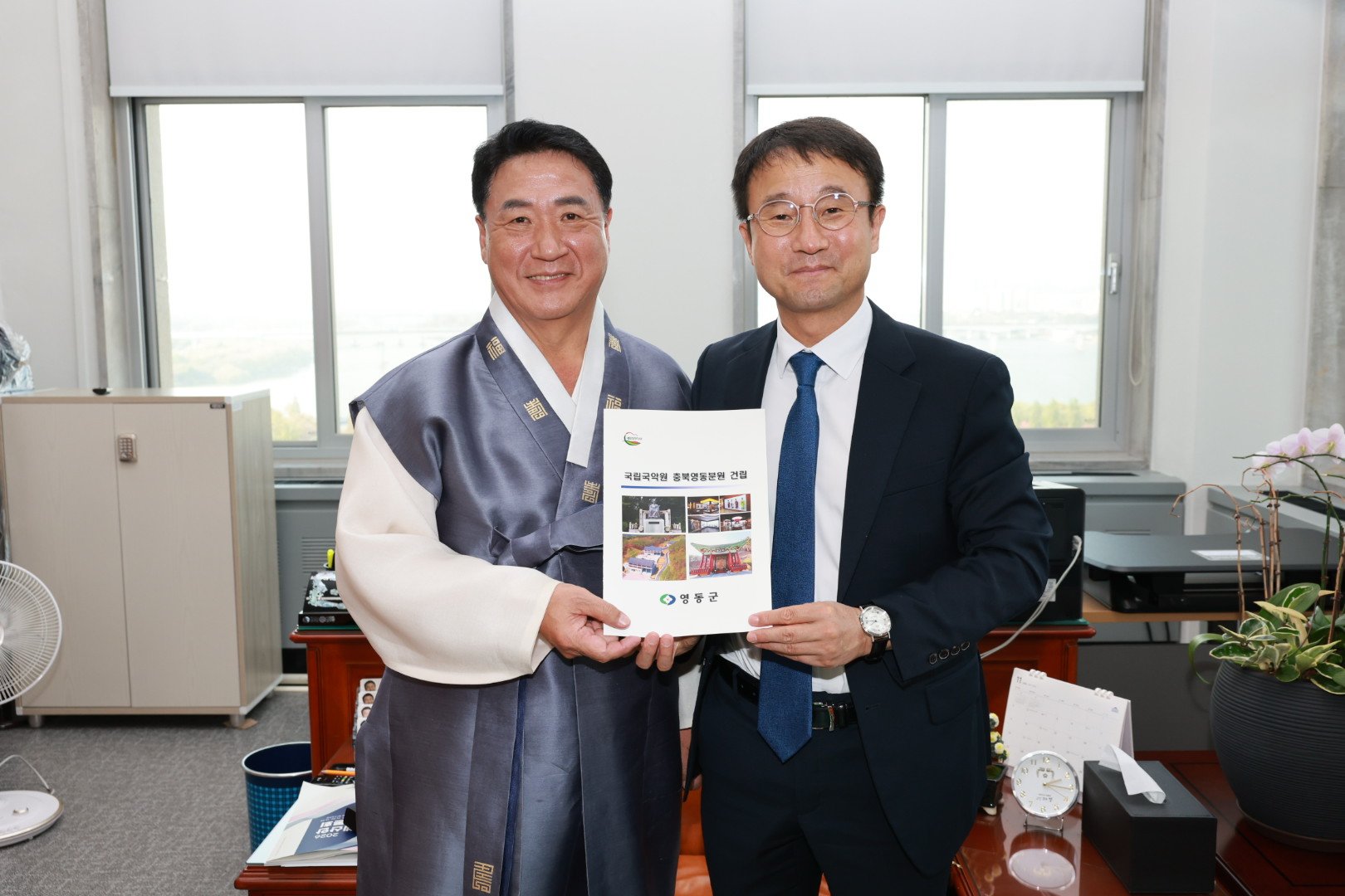 [세종타임즈] 정영철 영동군수는 4일 국회를 방문해 ‘국립국악원 영동분원’설립의 필요성과 당위성을 다시 한번 강조하며 적극적인 지원을 요청했다.