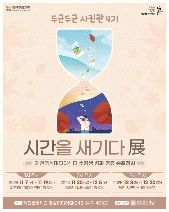 [세종타임즈] 제천문화재단이 제천영상미디어센터 교육 수강생들의 작품을 순회 전시하는 '두근두근 사진관 4기 : 시간을 새기다 展'을 오는 11월 7일부터 12월 30일까지 제천시 일원에서 개최한다.