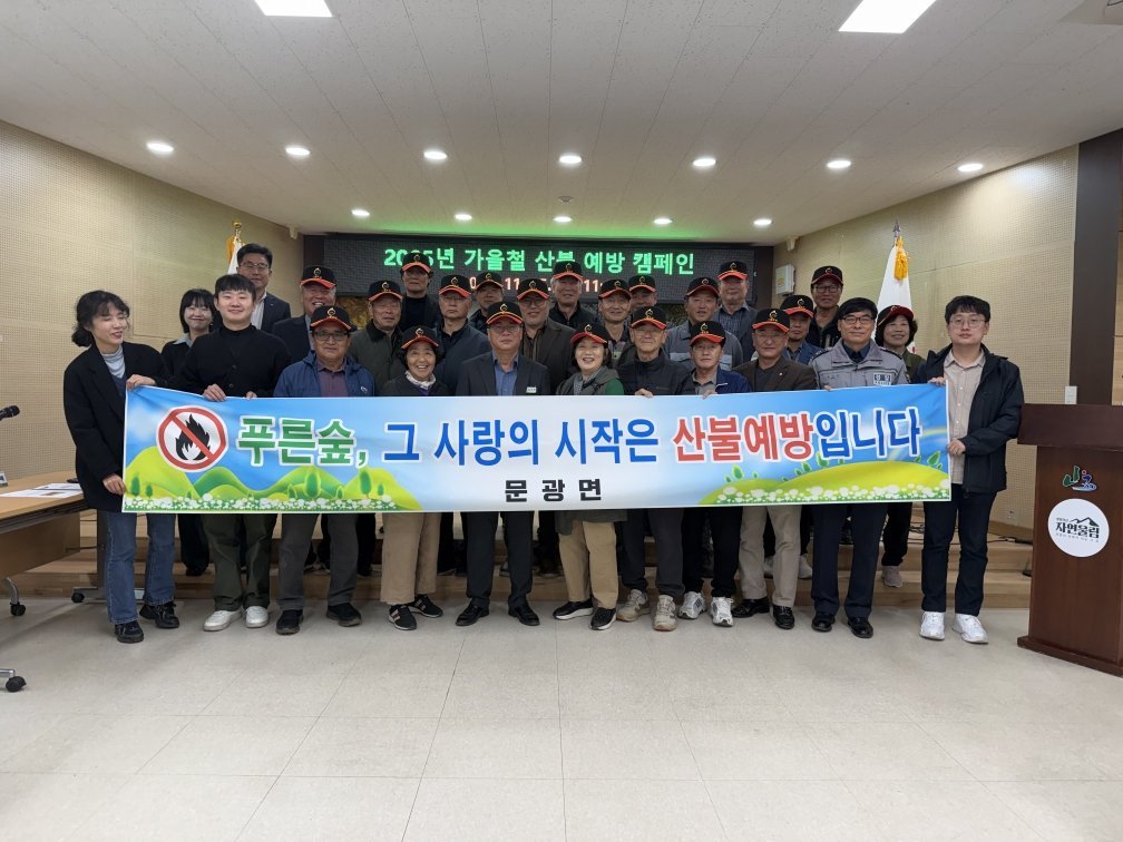 결의대회에는 문광면 22개 마을 이장들이 모두 참석해, 산불 예방의 중요성을 되새기고 ‘산불 없는 안전한 문광면’을 만들기 위한 의지를 다졌다.