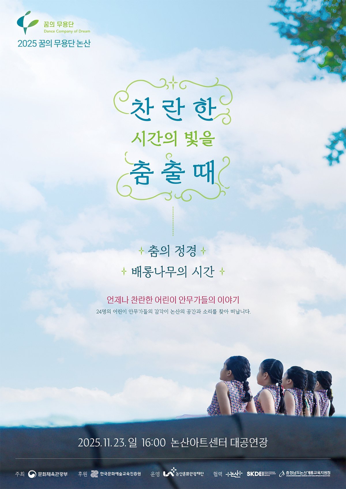 [세종타임즈] 논산문화관광재단이 오는 11월 23일 오후 4시 논산아트센터 대공연장에서 2025 꿈의 무용단 논산 정기공연 ‘찬란한 시간의 빛을 춤출때’를 개최한다고 밝혔다.