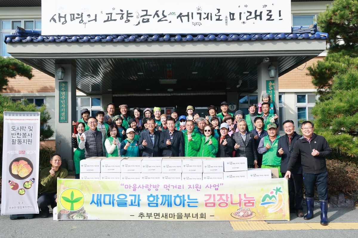 박범인 금산군수는 이날 현장을 찾아 어려운 이웃을 위해 나서준 새마을회원들에게 감사를 표하며 김장을 도왔다.