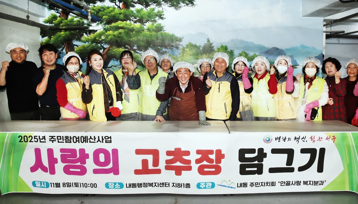 이태영 내동 주민자치회장은“이번 고추장 담그기 체험과 나눔 행사는 전통문화 체험을 넘어, 어려운 이웃에게 따뜻한 마음을 전하는 의미 있는 자리였다”며 “함께하는 기쁨과 나눔의 가치를 다시 한번 느꼈다”고 말했다.