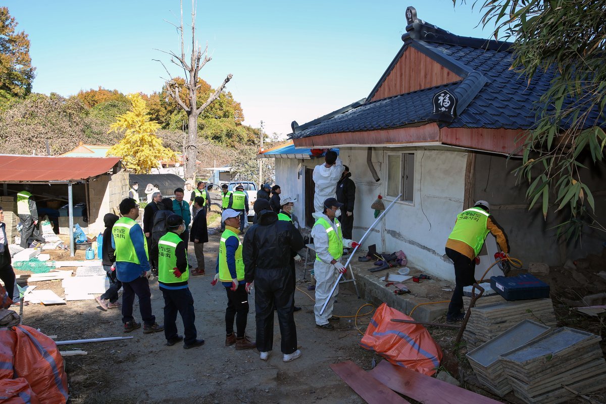 이번 봉사활동은 건축 관련 재능 기부의 일환으로 당진시청 건축직 공무원과 당진지역건축사회가 참여해 지붕 보수, 외벽 도색을 비롯해 집 내부 도배 및 청소 등 주거환경 개선 작업을 진행했다.