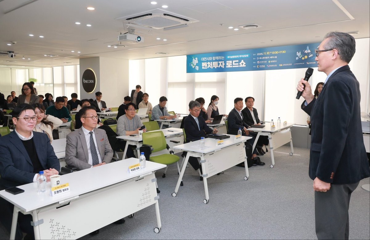 [세종타임즈] 대전시와 한국벤처캐피탈협회는 12일 대전의 유망기업과 수도권 투자기관을 초청해 D-유니콘라운지에서 ‘벤처투자로드쇼’를 개최했다.