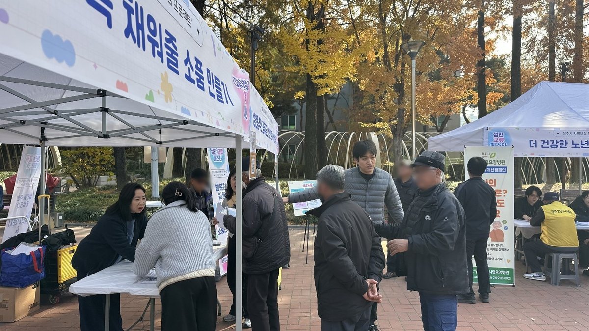 행사 첫날인 12일에는 청주시노인종합복지관, 청주시독거노인통합지원센터, 청주시립요양병원, 청주시상당보건소가 참여해 건강상담, 혈압·혈당 측정, 치매예방 프로그램 등 어르신을 위한 다양한 복지 서비스를 제공했다.