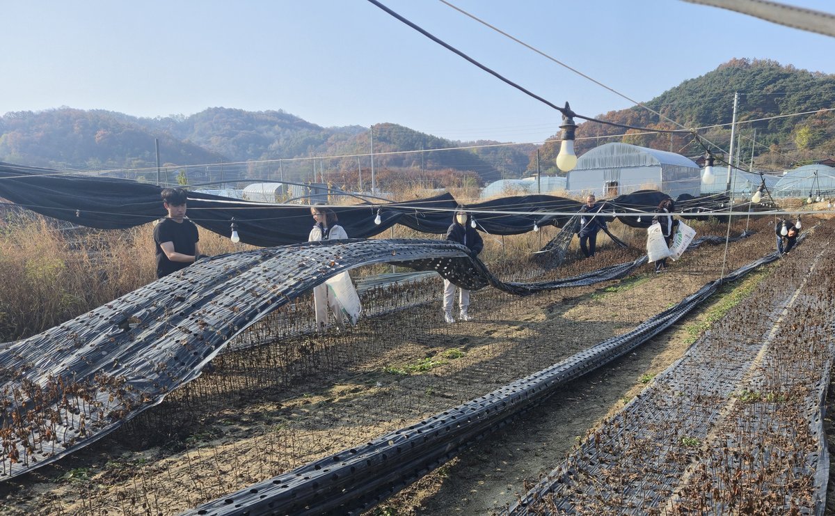 직원들은 들깻잎 수확 후 남은 비닐 수거 및 농지 정리에 힘을 보태며 구슬땀을 흘렸다.