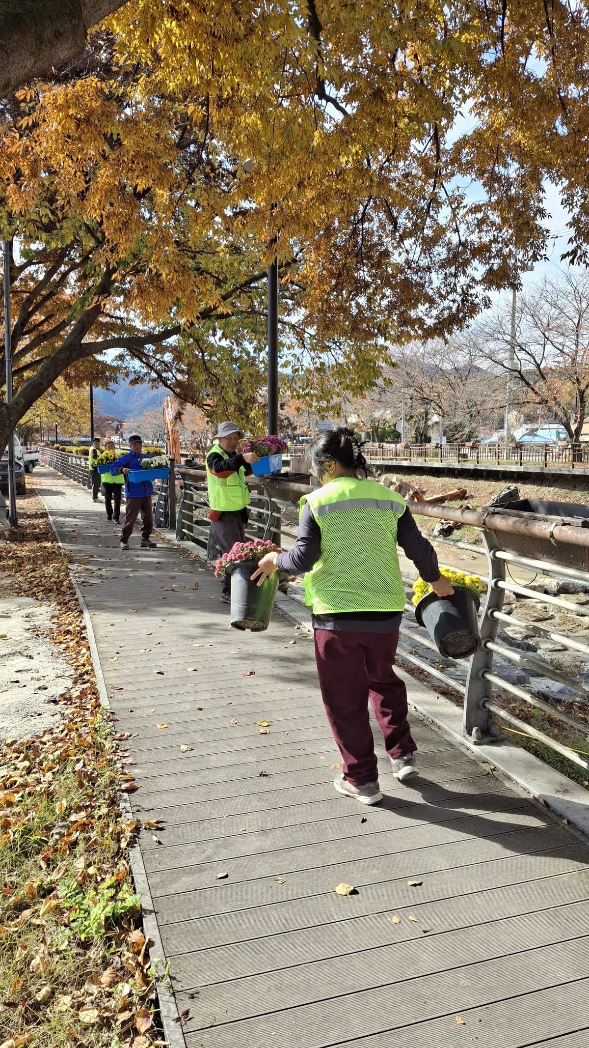 금산천과 금천대교에는 약 2000개의 꽃길화분이 설치됐으며 내년 봄 재설치를 위해 화분을 수거하고 미관 관리를 위해 청소 작업도 마쳤다.