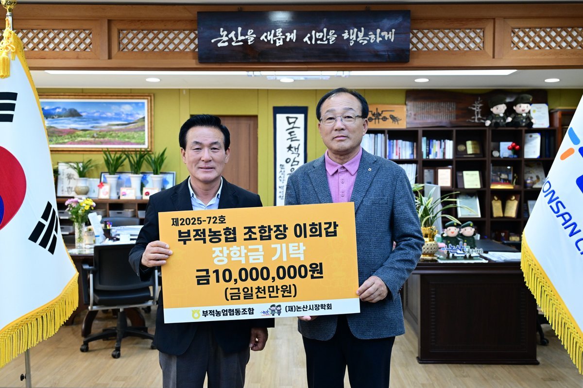 논산시는 광석농협과 부적농협이 각각 1,000만 원의 장학금을 논산시장학회에 기탁했다고 밝혔다.