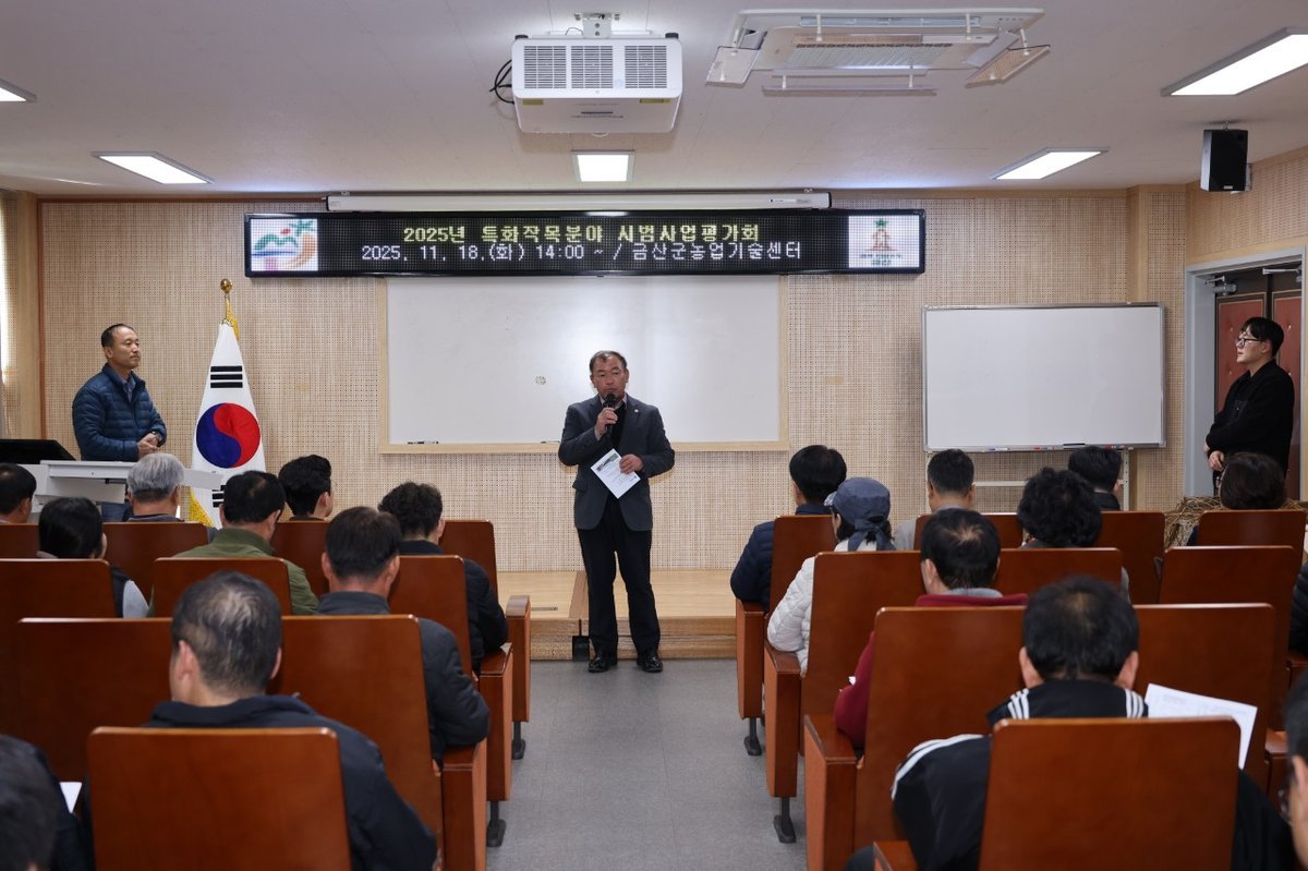 [세종타임즈] 금산군농업기술센터는 지난 18일 센터 농업인교육장 및 시범사업장에서 특화작목분야 재배 시범사업 평가회를 개최했다.