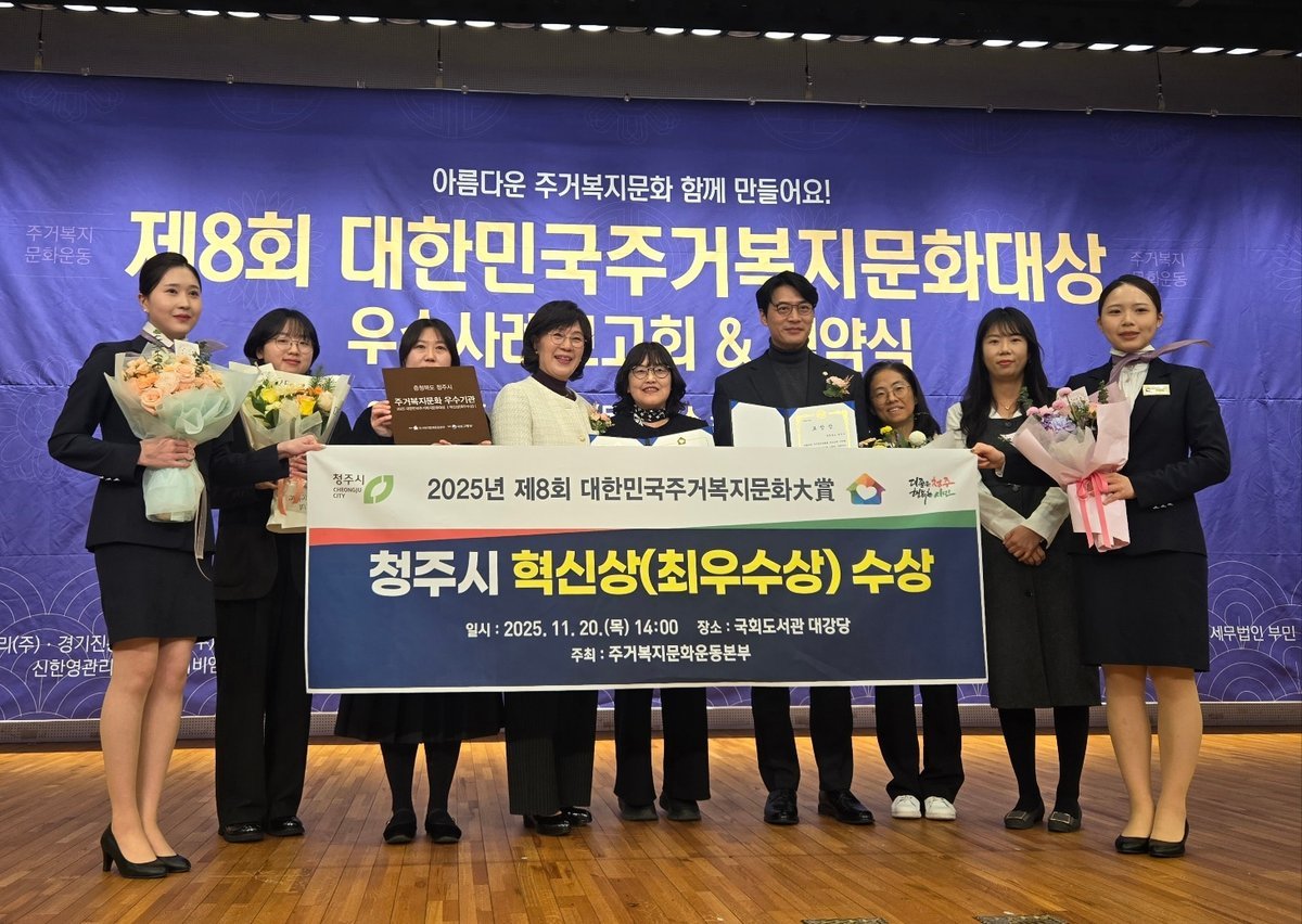 민경아 시 복지정책과장은 “이번 수상은 청주시가 추진해 온 주거복지 정책이 현장에서 실질적인 변화를 만들어냈다는 점을 인정받은 뜻깊은 결과”며 “앞으로도 안정적인 주거환경 조성을 위한 전문적·지속 가능한 주거복지행정을 강화해 나가겠다”고 말했다.