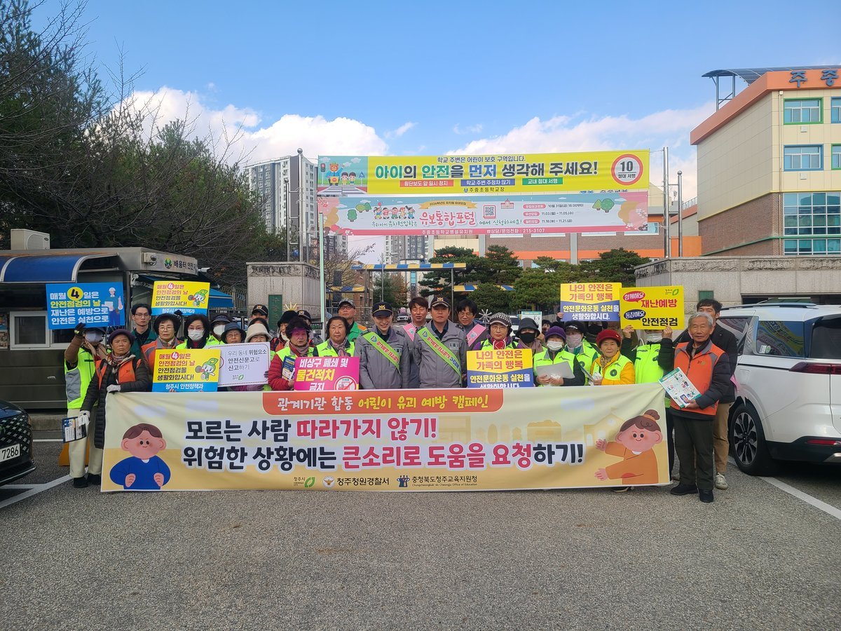 [세종타임즈] 청주시는 20일 청원구 주중초등학교 일원에서 어린이 등하굣길 안전 확보를 위한 ‘어린이 약취·유인 예방 캠페인’을 실시했다.