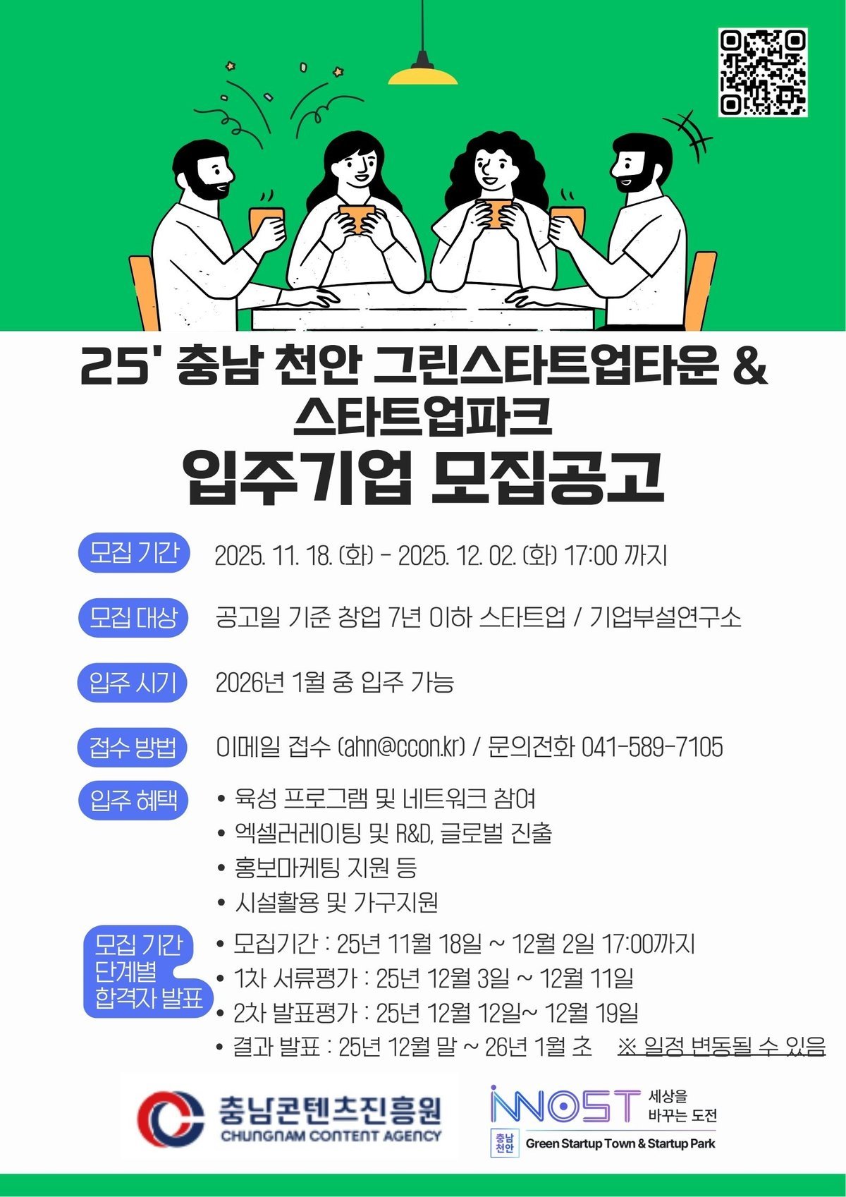 [세종타임즈] 충남콘텐츠진흥원은 오는 12월 2일까지 ‘충남 천안 복합형 스타트업 파크’에 입주할 신규 스타트업을 모집한다고 밝혔다.