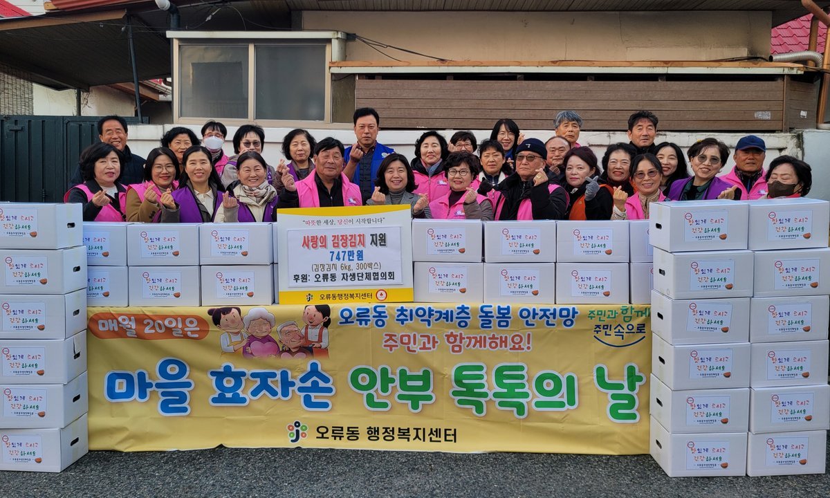 지난 10월 20일에는 동 자생단체 등 마을 주민들이 처음으로 한 자리에 모여 정성껏 만든 밑반찬과 복지·행정 등 다양한 정보안내문과 함께 돌봄이 필요한 총 61세대의 매칭 독거가구를 방문해 안부를 살폈다.