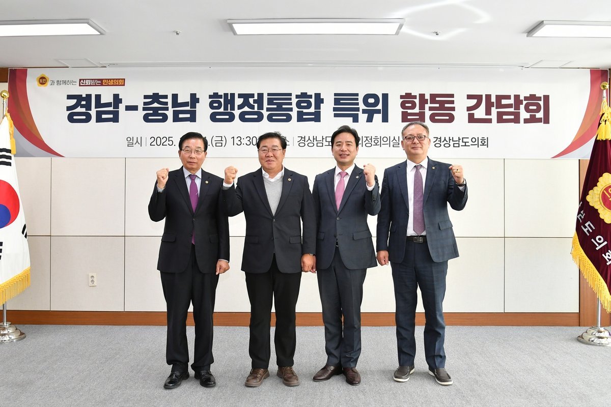 [세종타임즈] 충남도의회 ‘충남대전 행정통합 특별위원회’는 21일 경상남도의회를 방문해 ‘부산경남 행정통합 특별위원회’와 합동 간담회를 갖고, 행정통합추진 전략과 초광역 협력 확대 방안을 논의했다.