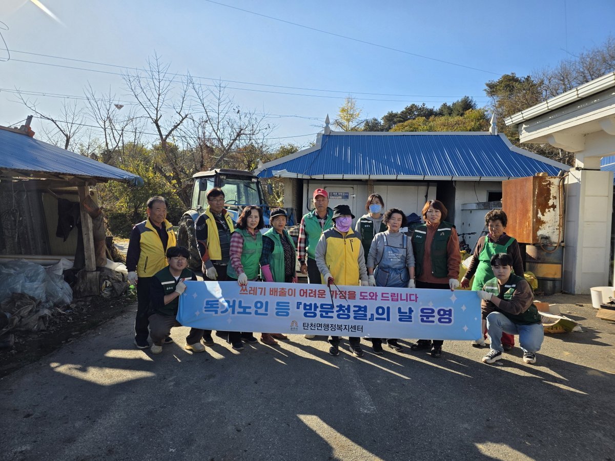 이날 현장에는 탄천면 지역사회보장협의체와 새마을회, 이장단협의회, 행정복지센터 직원 등이 함께 참여했으며, 복지 사각지대에 놓인 독거노인 가구를 찾아 집 안팎에 오래 쌓여 있던 묵은 쓰레기 약 2톤을 수거해 처리했다.