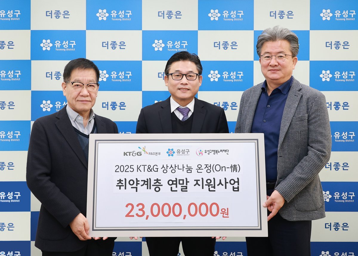 [세종타임즈] 대전 유성구는 26일 KT&G R&D본부가 유성구행복누리재단에 지역 내 취약계층 지원을 위한 후원금 2,300만 원을 기탁했다고 밝혔다.