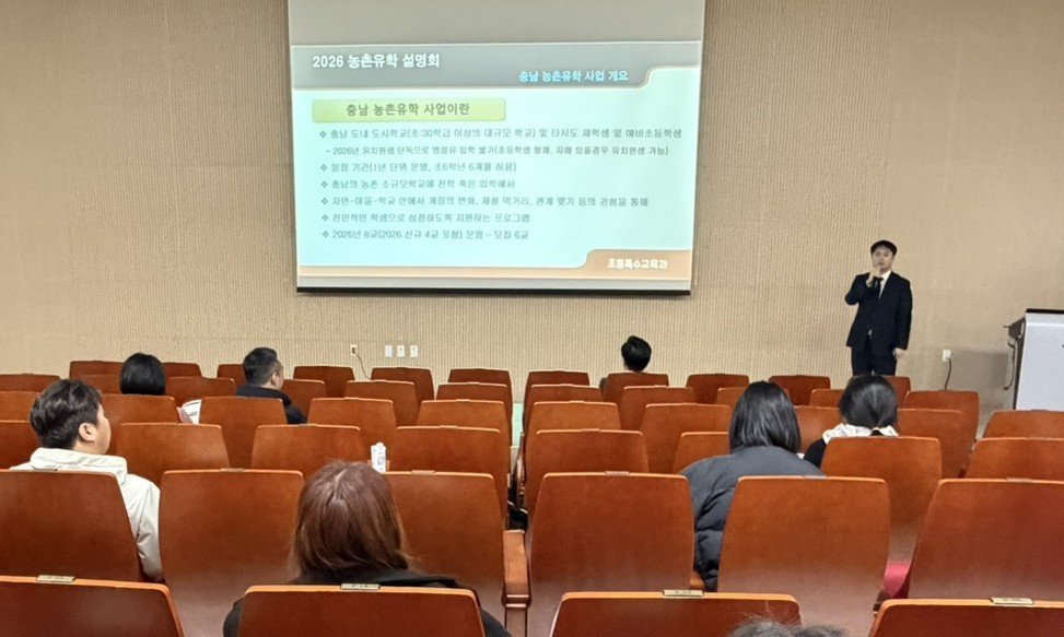 [세종타임즈] 충남교육청 은 26일, 충남교육청과학교육원 에서 농촌유학에 관심있는 학부모를 대상으로 ‘2026 충남 농촌유학 학부모 설명회 ’를 개최했다.