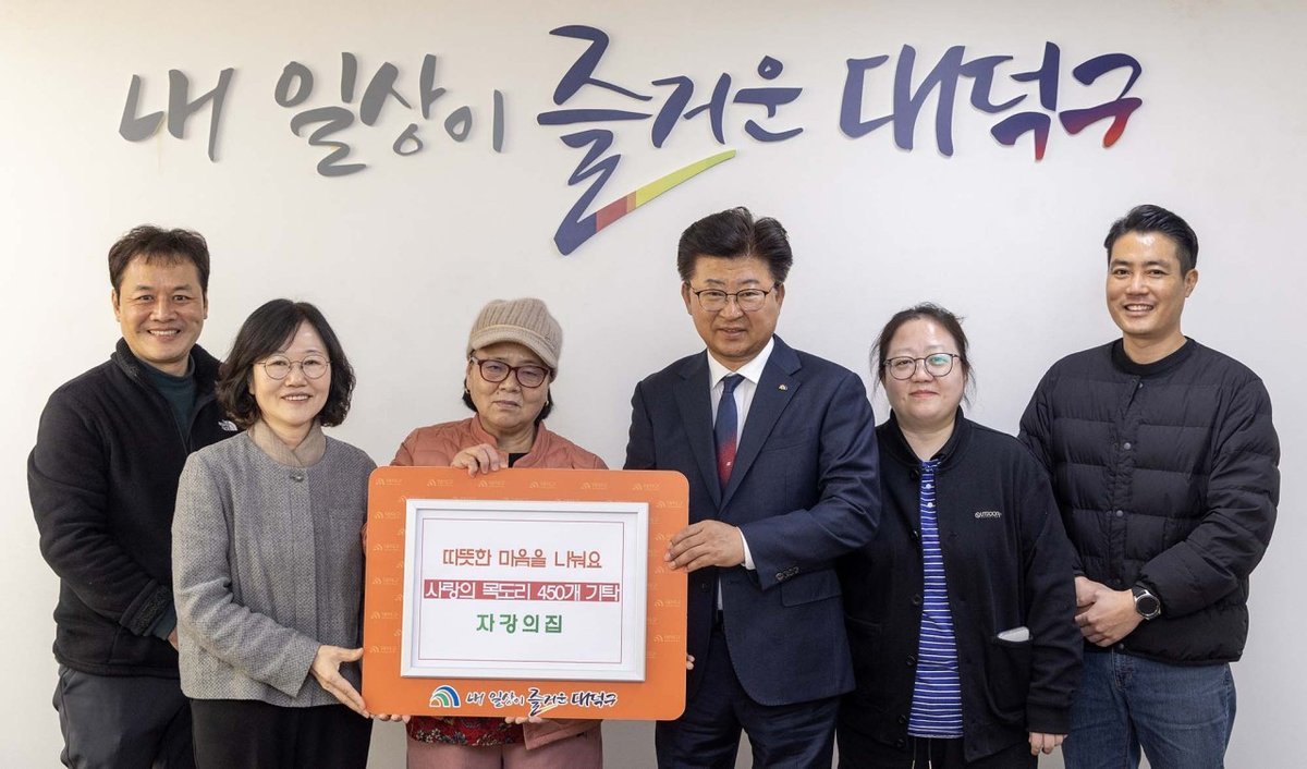 [세종타임즈] 대전 대덕구는 26일 노숙인 재활시설 자강의집으로부터 겨울철 취약계층과 어려운 이웃들을 위한 ‘사랑의 목도리’ 450개를 기부받았다.
