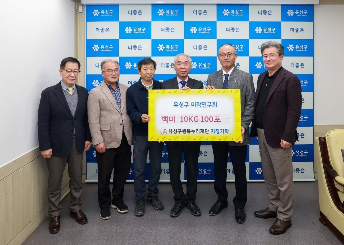 [세종타임즈] 대전 유성구는 지난 27일 유성구 미작연구회가 유성구 행복누리재단에 10kg 상당 백미 100포대를 기탁했다고 밝혔다.