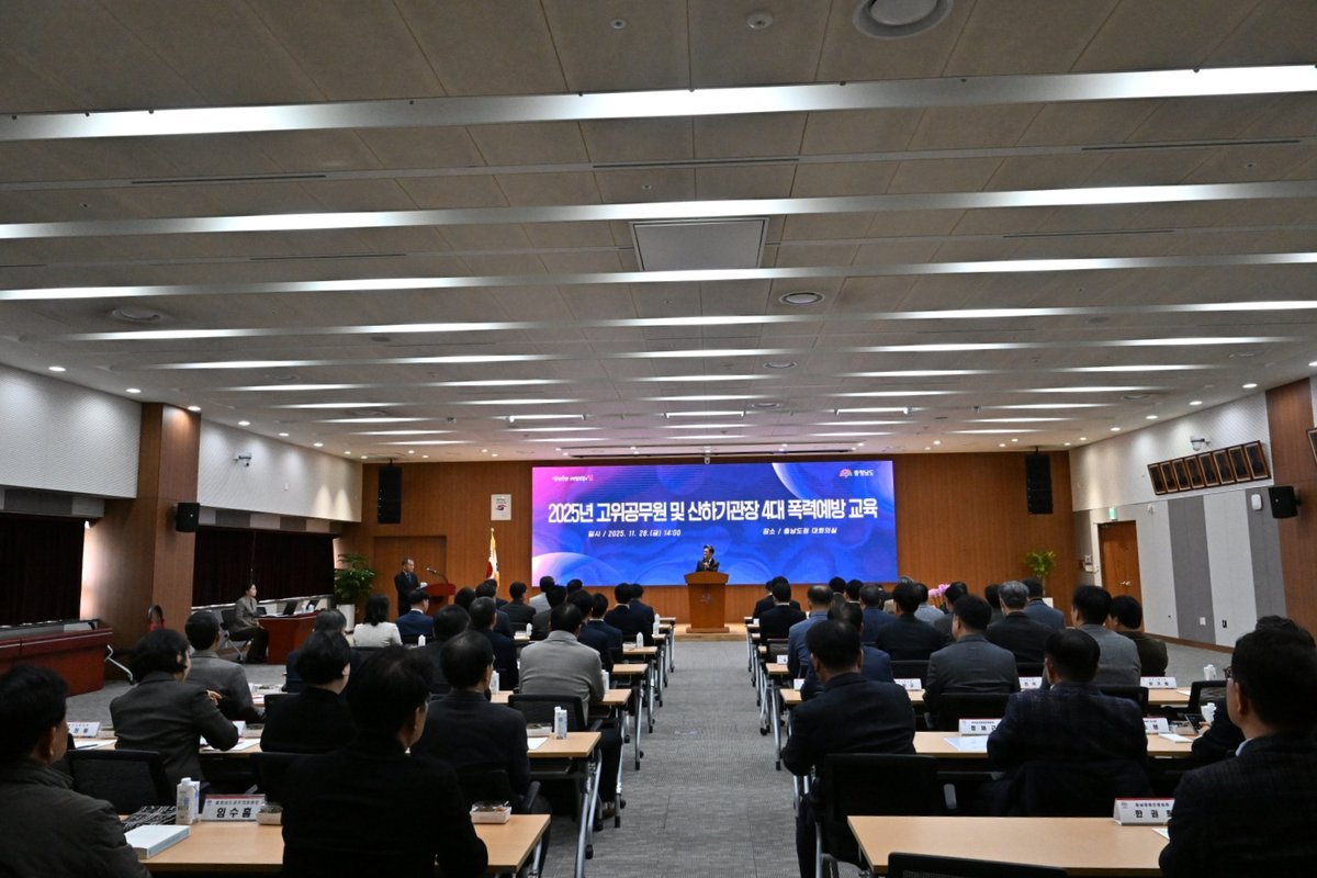 [세종타임즈] 충남도는 28일 도청 대회의실에서 ‘2025년 고위 공무원·산하 기관장 4대 폭력 예방 교육’을 진행했다.