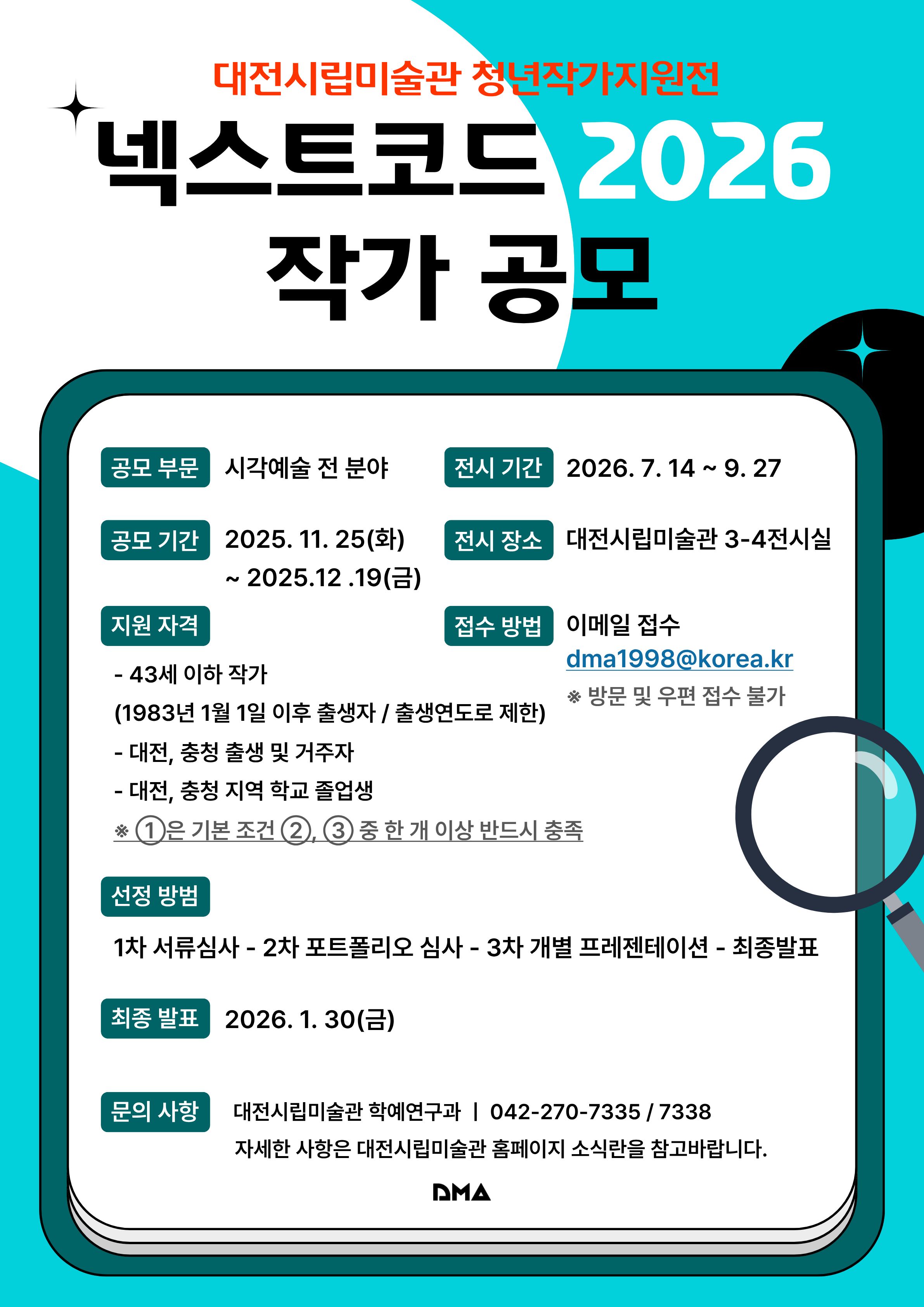 [세종타임즈] 대전시립미술관이 2026년도 청년작가지원전 ‘넥스트코드’ 참여 작가 공모를 실시한다.