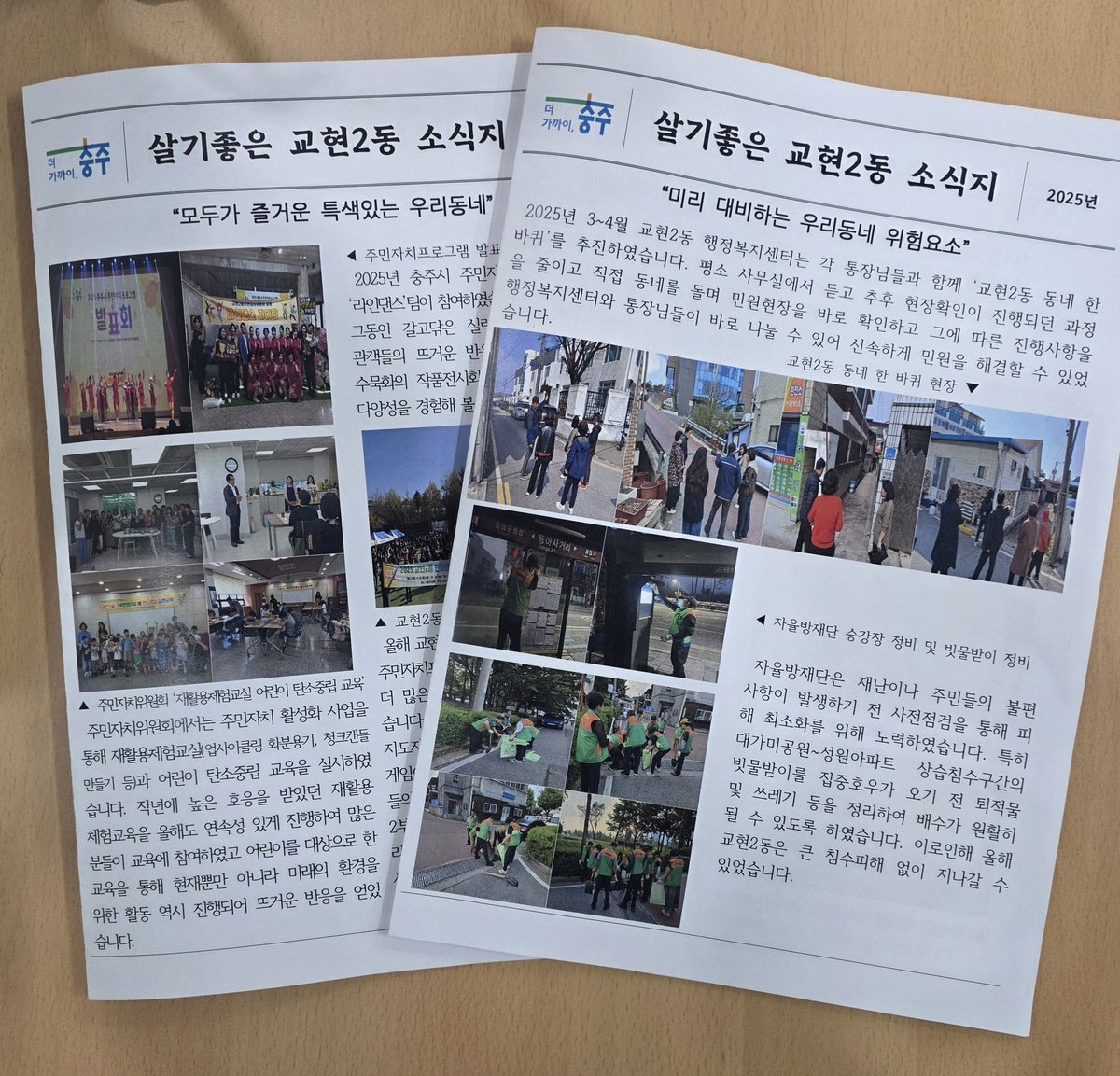 이번 소식지는 총 300여 부수를 발행해 교현2동행정복지센터와 지역 경로당 등에 비치하고 지역 주민, 직능단체 등을 통해서도 배포할 예정이다.
