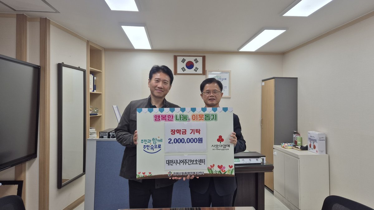 이종환 동장은 "어려운 이웃을 위해 따뜻한 사랑을 실천해 주시는 대전 시니어주간보호센터에 깊이 감사드린다 ”라며, “기탁해 주신 소중한 장학금은 든든한 디딤돌이 될 수 있도록 도움이 절실한 학생들에게 전달하겠다 ”라고 답했다.