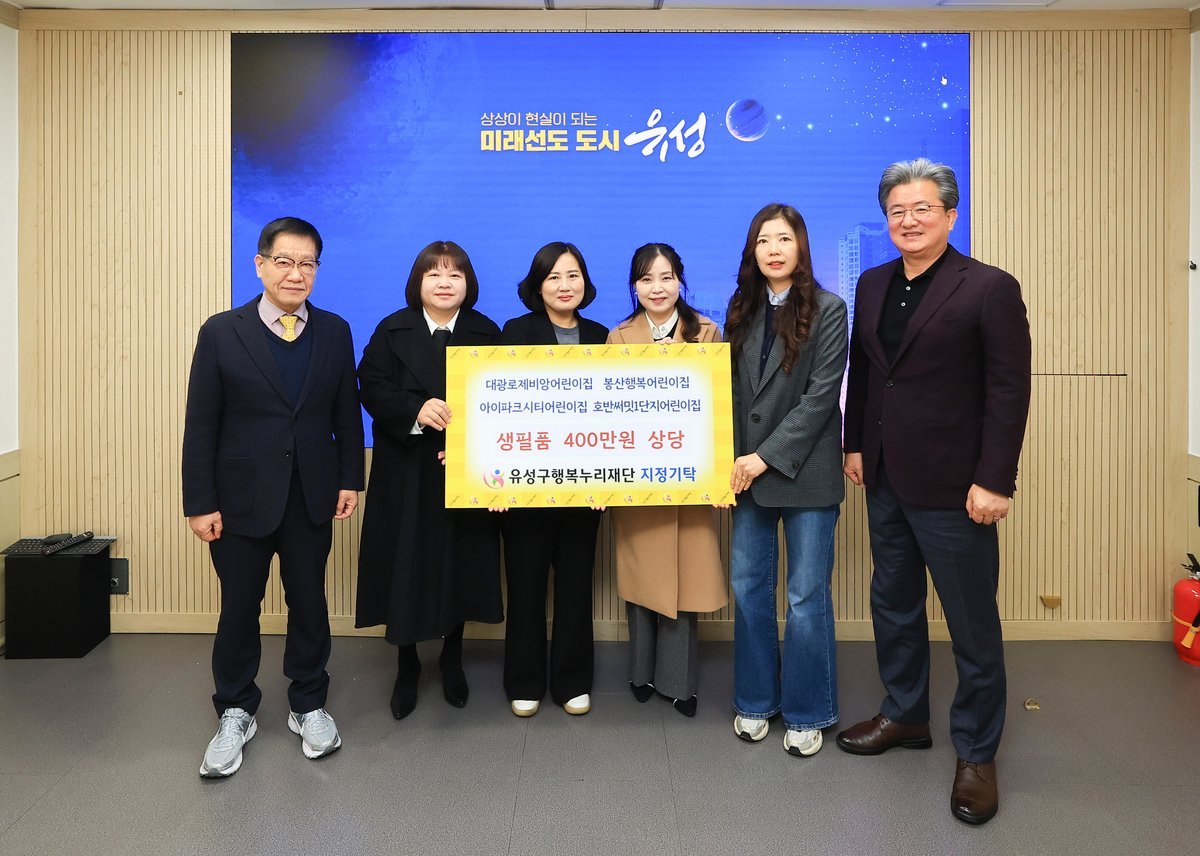 정용래 유성구청장은 “연말을 맞아 자발적으로 나눔을 실천해 주신 어린이집에 감사드린다”라며 “기탁해주신 생필품은 신속하게 전달하고 지역사회와 함께 복지 안전망을 강화하겠다”라고 말했다.